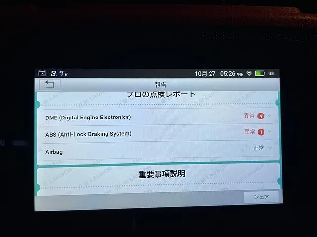 おそらく原因はそれですね。O2センサー、他のエラーも拾っておりましたが関連して拾ってしまっていると思われます。いったんチェックランプを消去して様子を見てもらうことになりました。