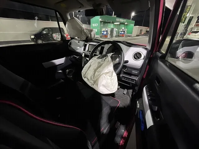 エアバックも開いており、運転席ドアも完全に開かない状態になっておりました。見た目以上に広範囲に損傷している可能性もありますのでこれから詳しく見させて頂きます。