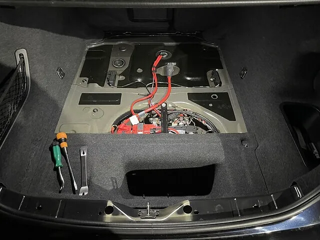 F10はトランク内側パネルをいくつか外しての交換作業になります。この寒い時期は結構バッテリーの消耗が激しくなりますね。こちらの535は純正適合がAGMバッテリーになっておりますので割高にはなりますが本来の性能を充分に発揮できるよう、AGMバッテリーに交換させていただきました。