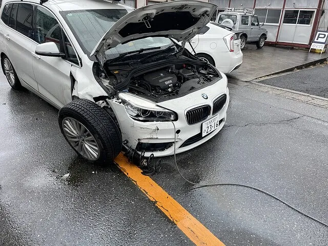 野木町T様BMW330 自損事故発生 保険修理受付け入庫